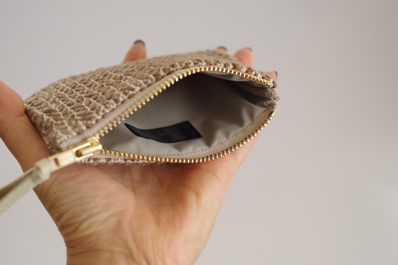 「ミニポーチ 」×「編目文様ベージュ」