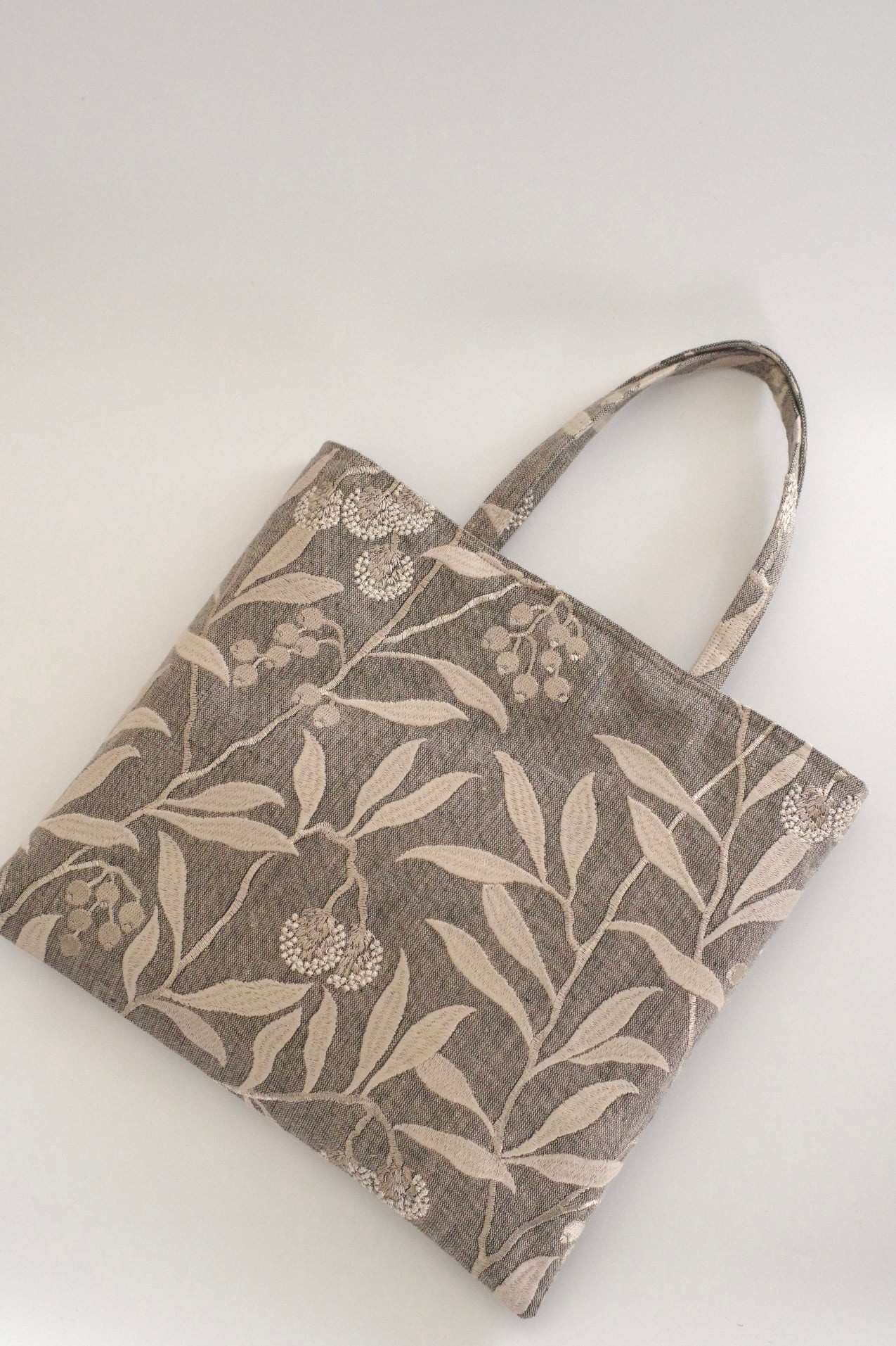 刺繍生地の魅力を気軽に楽しめるスクエア型バッグです