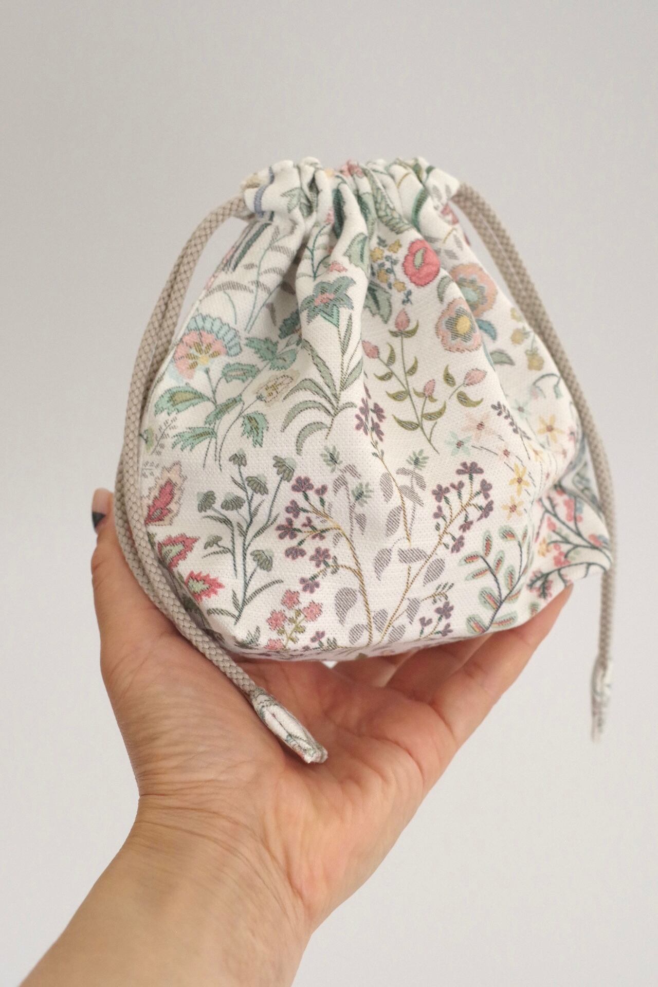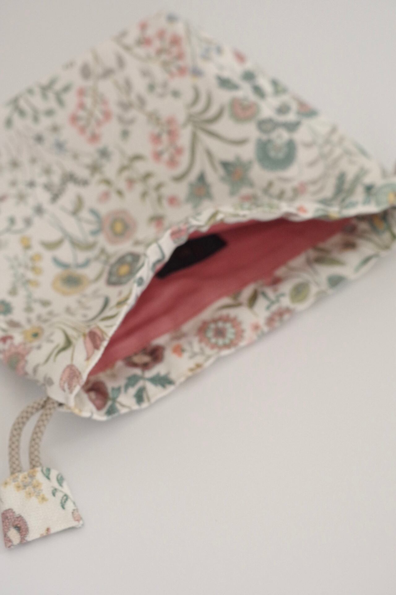 英国リバティ社のコットンのハギレで製作した限定品の巾着です