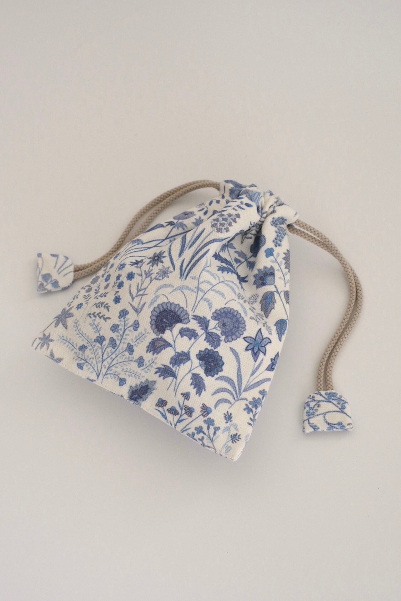 英国リバティ社のハギレ(コットン)で製作した限定品の巾着です