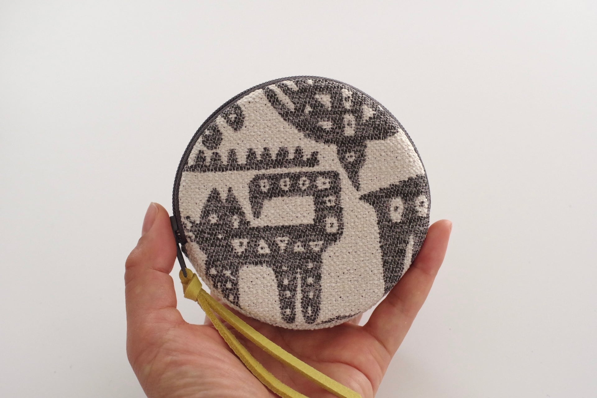 アクセサリーや、お薬、リップなど、小物の収納に便利な丸ポーチです。