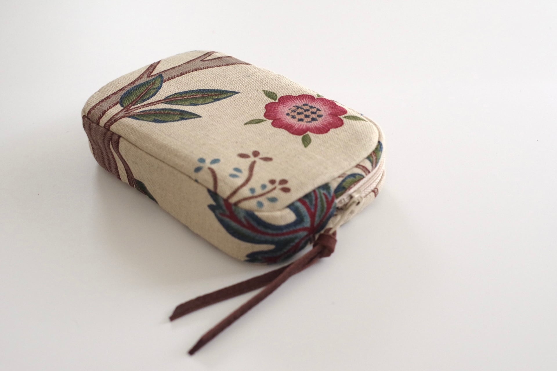 毎回生地を変えて製作しているコンパクトなサイズのポーチです