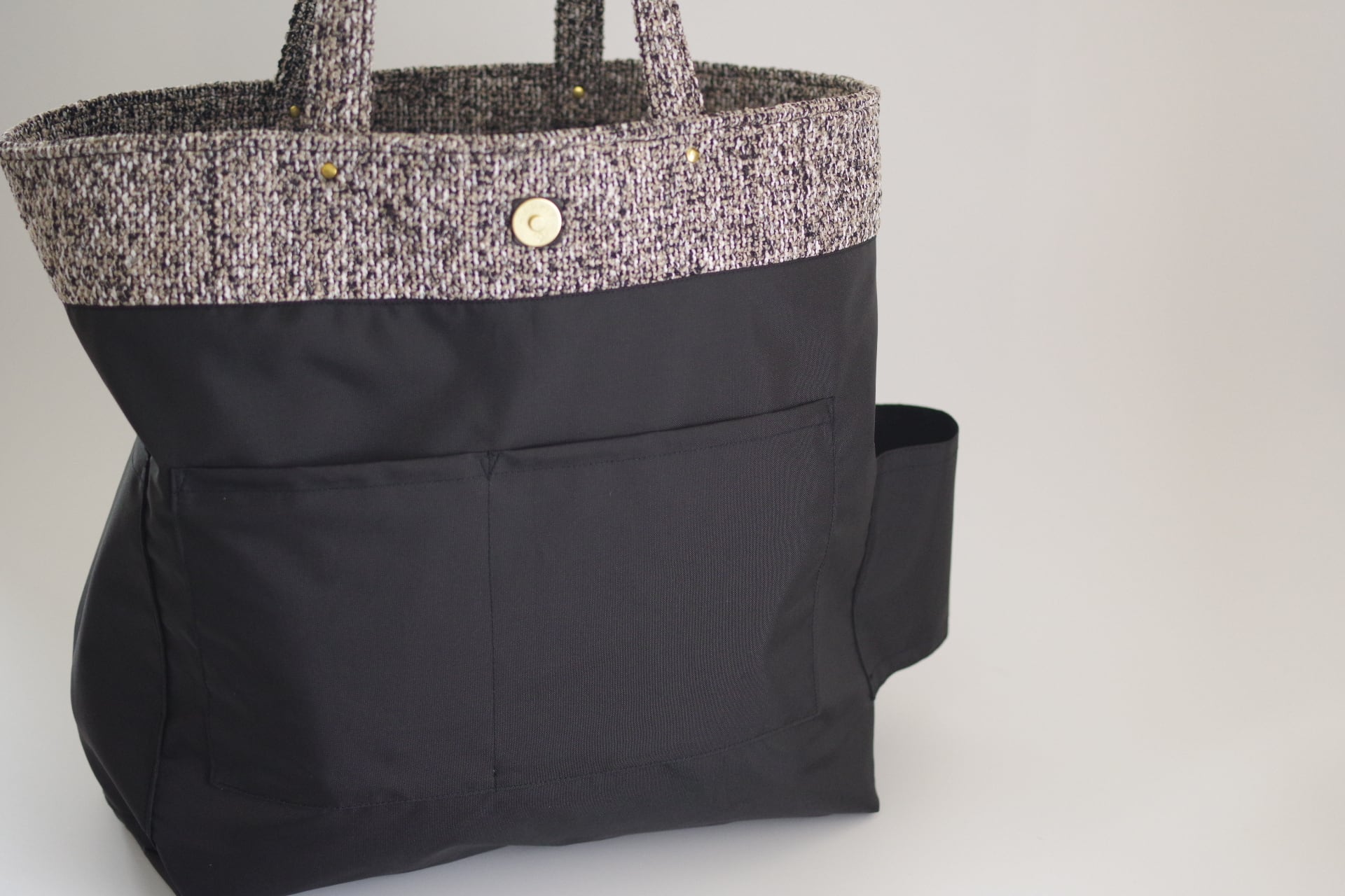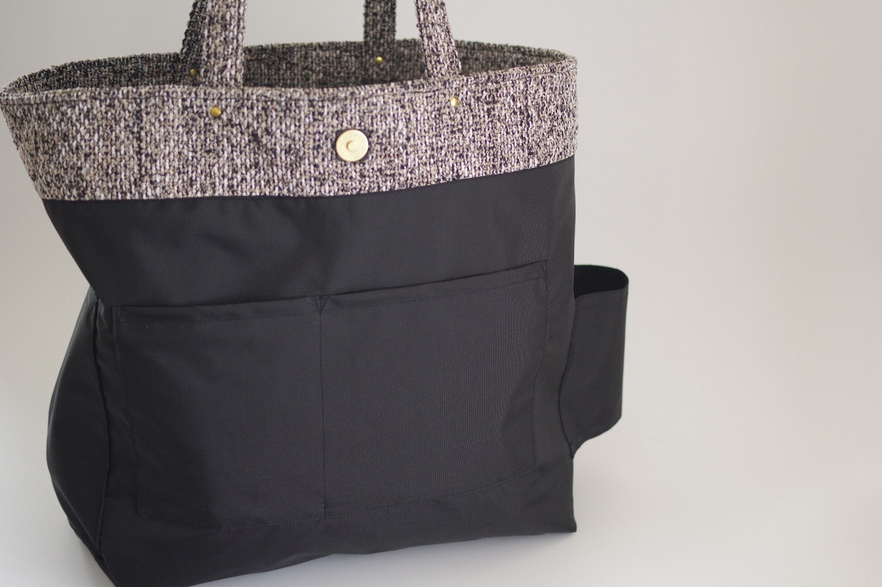 きちんとした印象を与えてくれる上品なテキスタイルで製作した収納力抜群のトートバッグです
